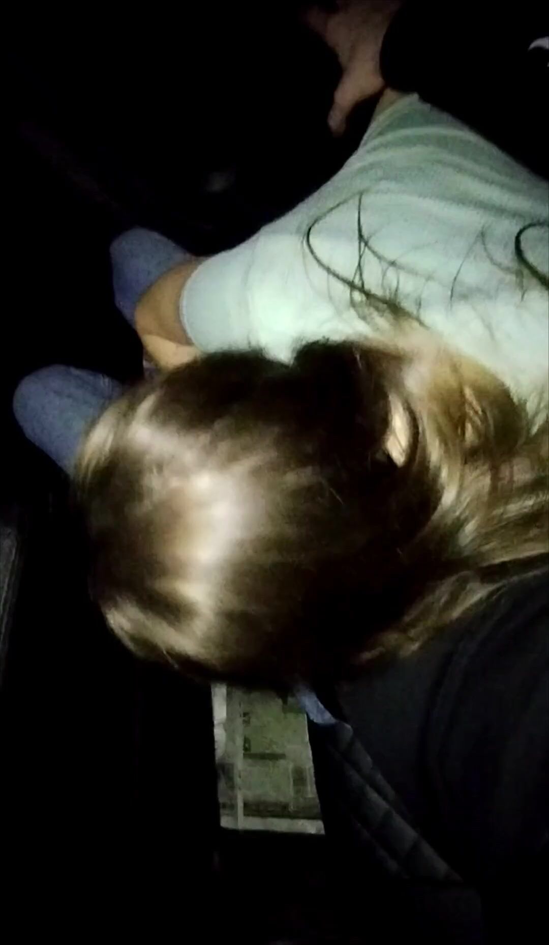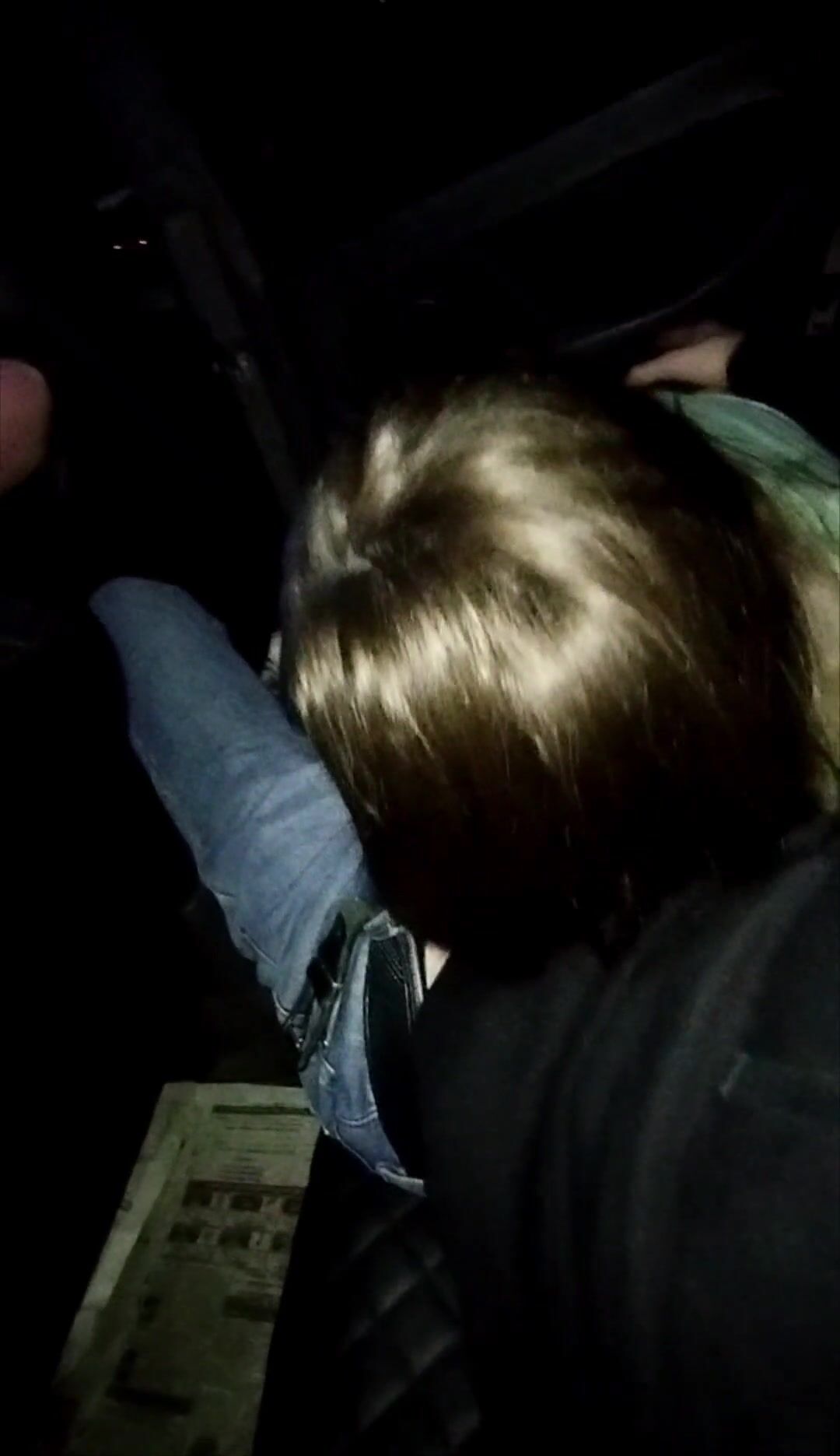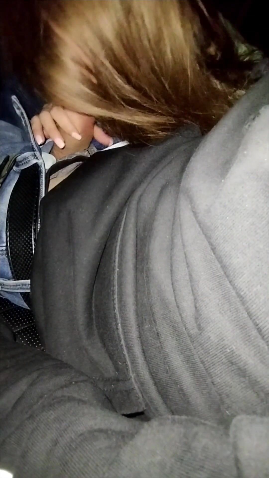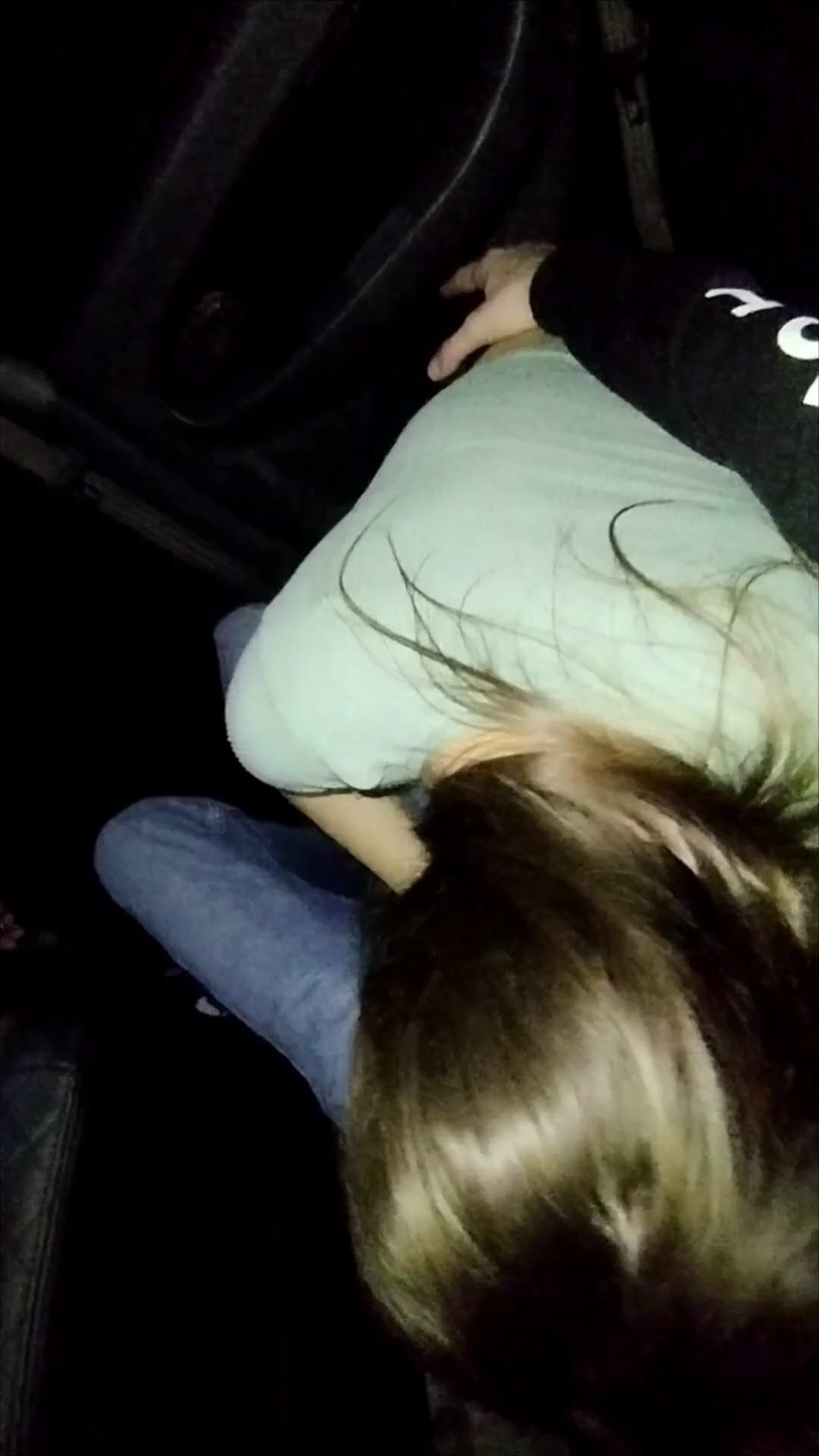 Russische MILF in daunenjacke saugt den schwanz des Fahrers ab, der sie auf dem smartphone filmt