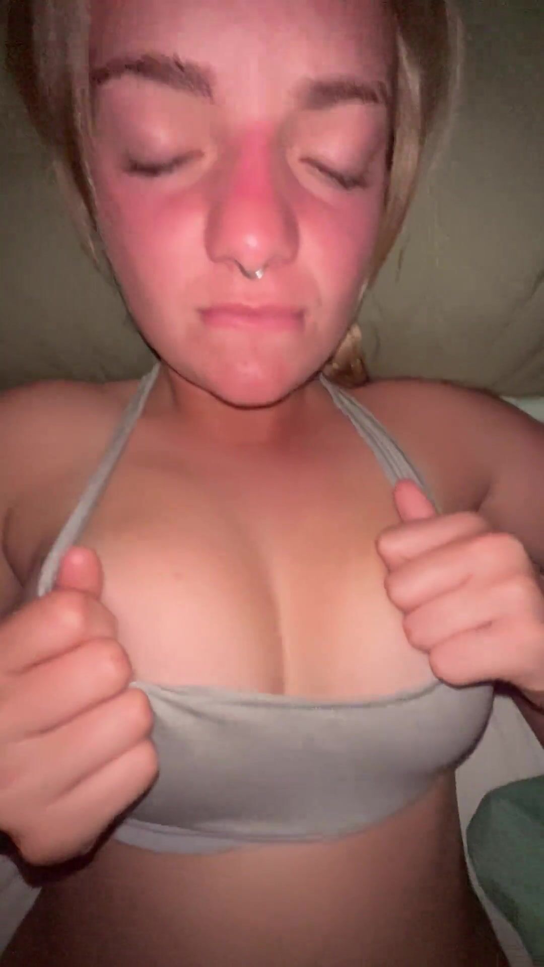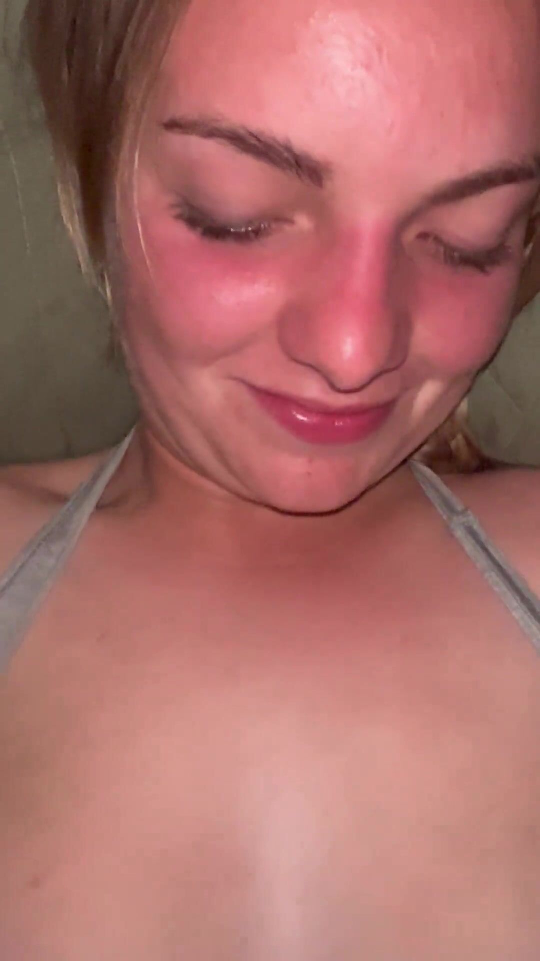Der Freund filmt auf dem Smartphone, wie er vor dem Schlafengehen ein vollbusiges Mädchen im T-Shirt und mit einer rasierten Muschi fickt