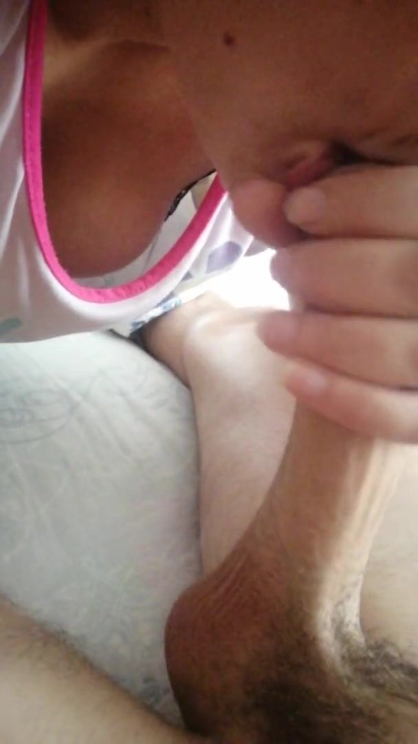 Mujer rusa con pechos visibles debajo de la camiseta chupa la polla de su pareja durante la transmisión en primera persona