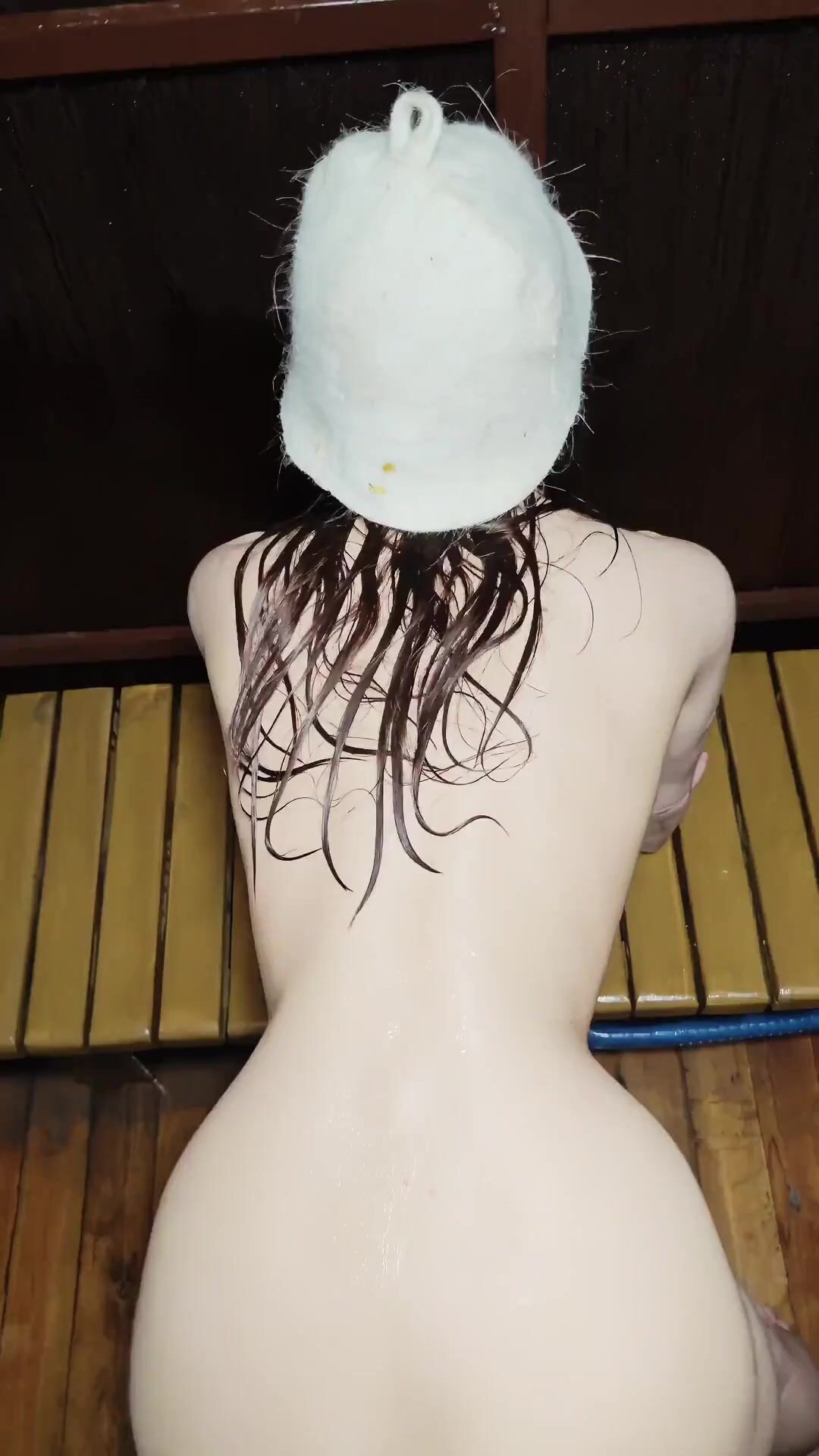 Jeune coquine avec des seins appétissants et des fesses rondes fait une fellation et baise avec un partenaire dans le hammam